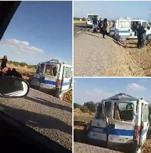 انقلاب سيارة اسعاف تنقل مصابين بكورونا