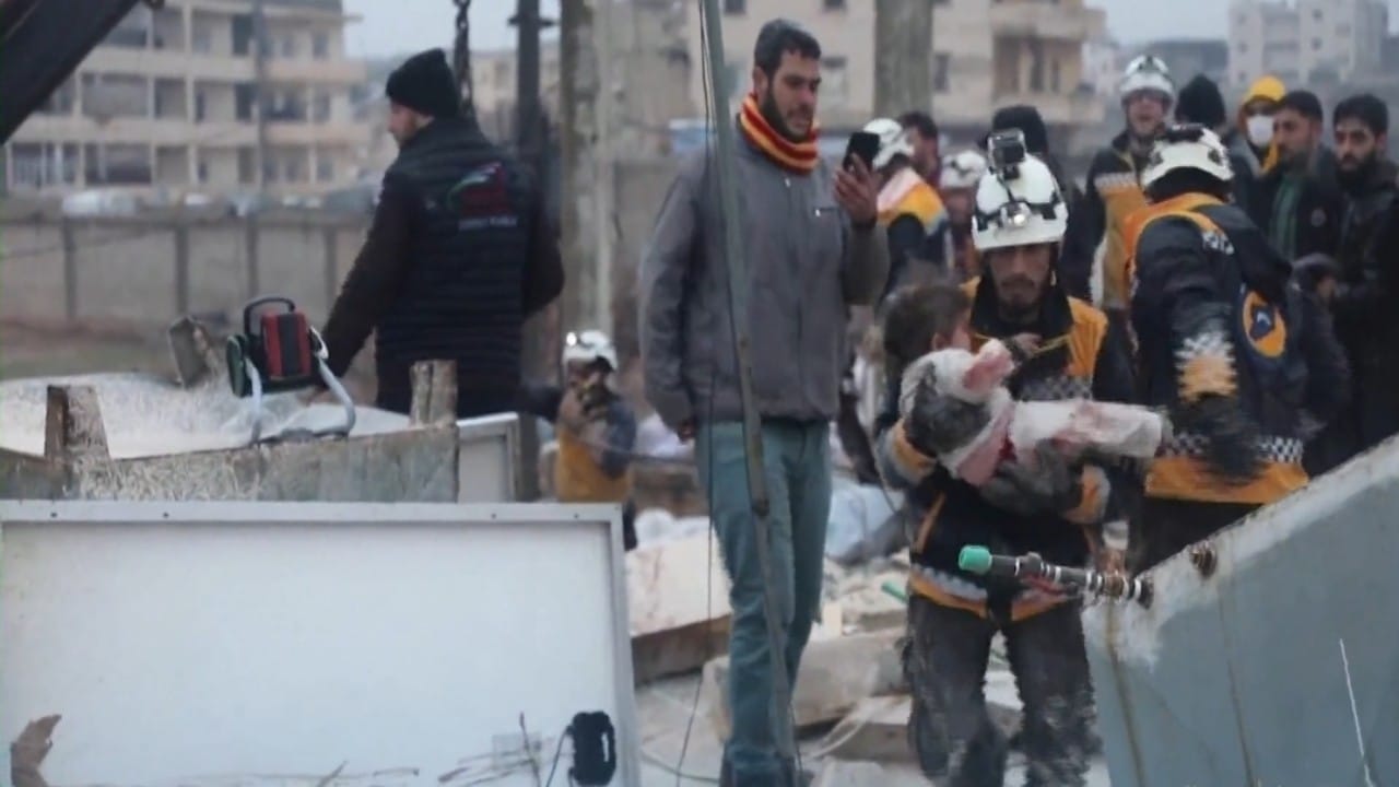شاهد/ مولود يبصر النور تحت أنقاض زلزال سوريا المدمّر (فيديو)